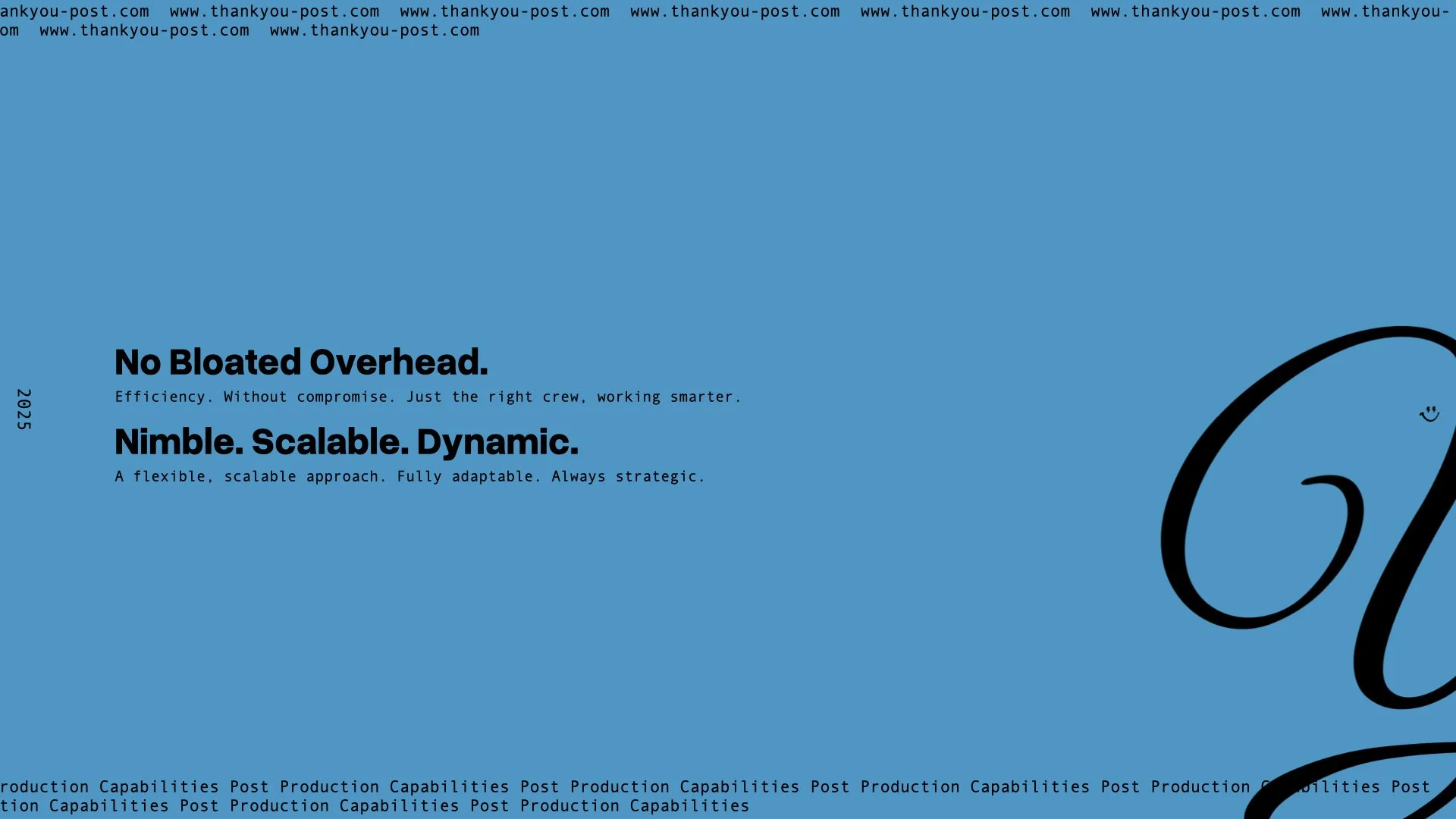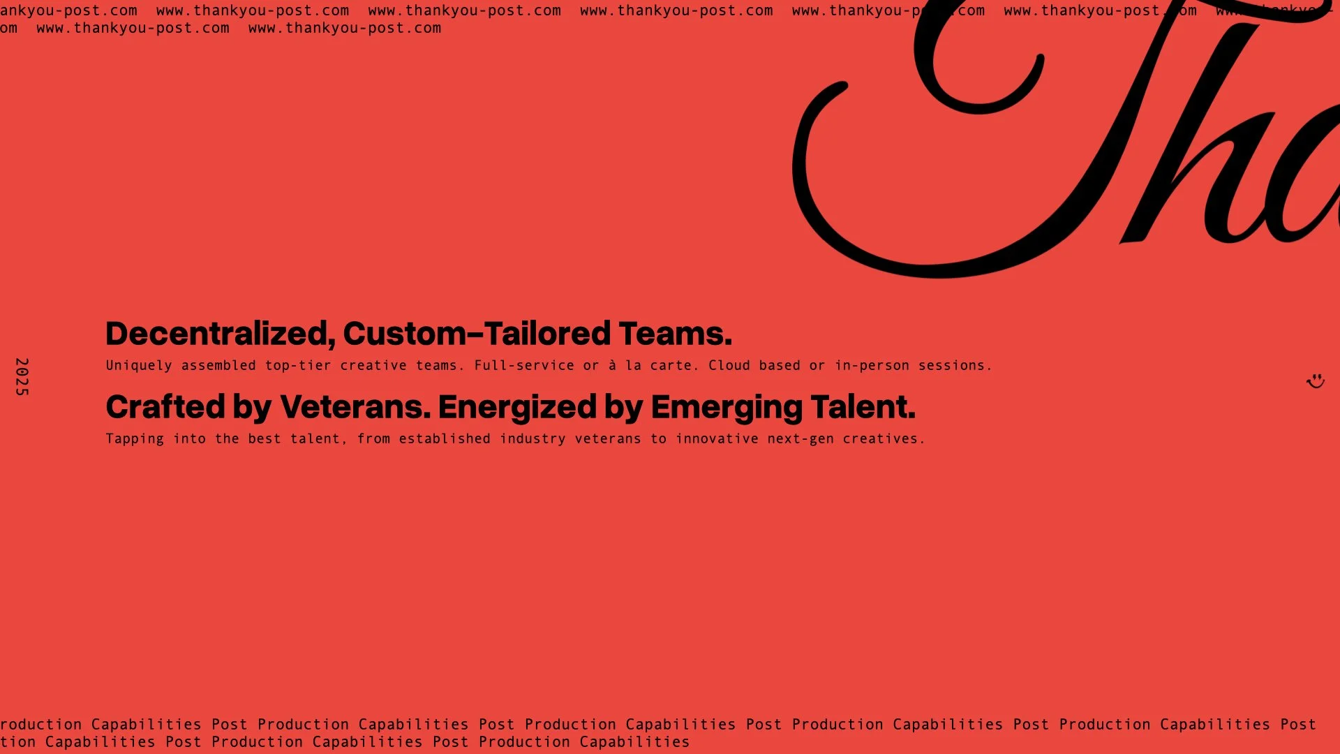 Austin Will Founder + EPaustin@thankyou-post.com+1 (971) 409-0806 Jason Sotomayor Sr. Producerjason@thankyou-post.com+1 (201) 741-3038